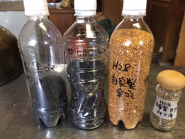 未分類 ゴマ3種類、第一陣完成! 2017年3月9日 昨年10月に収穫し、よく乾燥させておいた白・黒・金ゴマ3種類が、ようやく今日瓶詰めされて使える状態になりました!!いやーー長かった、、!(実はまだ、ゴミを取り除く前のゴマたちがいます。。) 早速今日のお昼ご飯で、瓶に少し入りきらなかった白ゴマから使ってみようと思います〜。 自家製ゴマなので、炒って殺菌中。 by 研修生ゆり