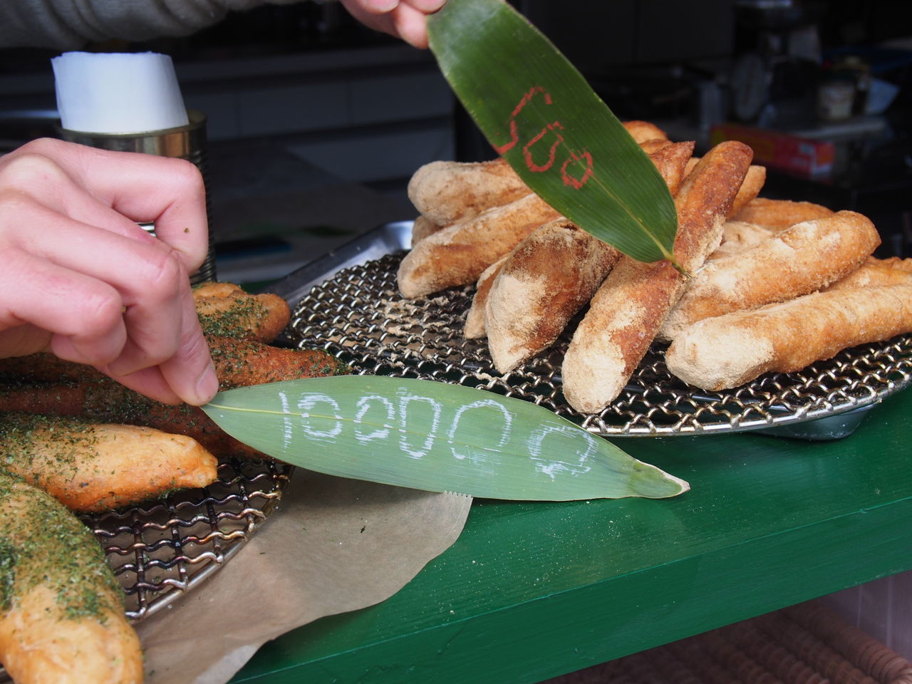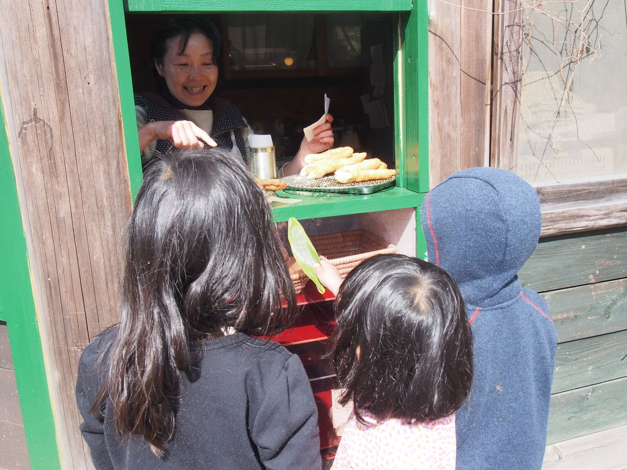 大人も子どもも、葉っぱのお金をにぎりしめて、きな粉・塩青海苔のドーナツを買いに。